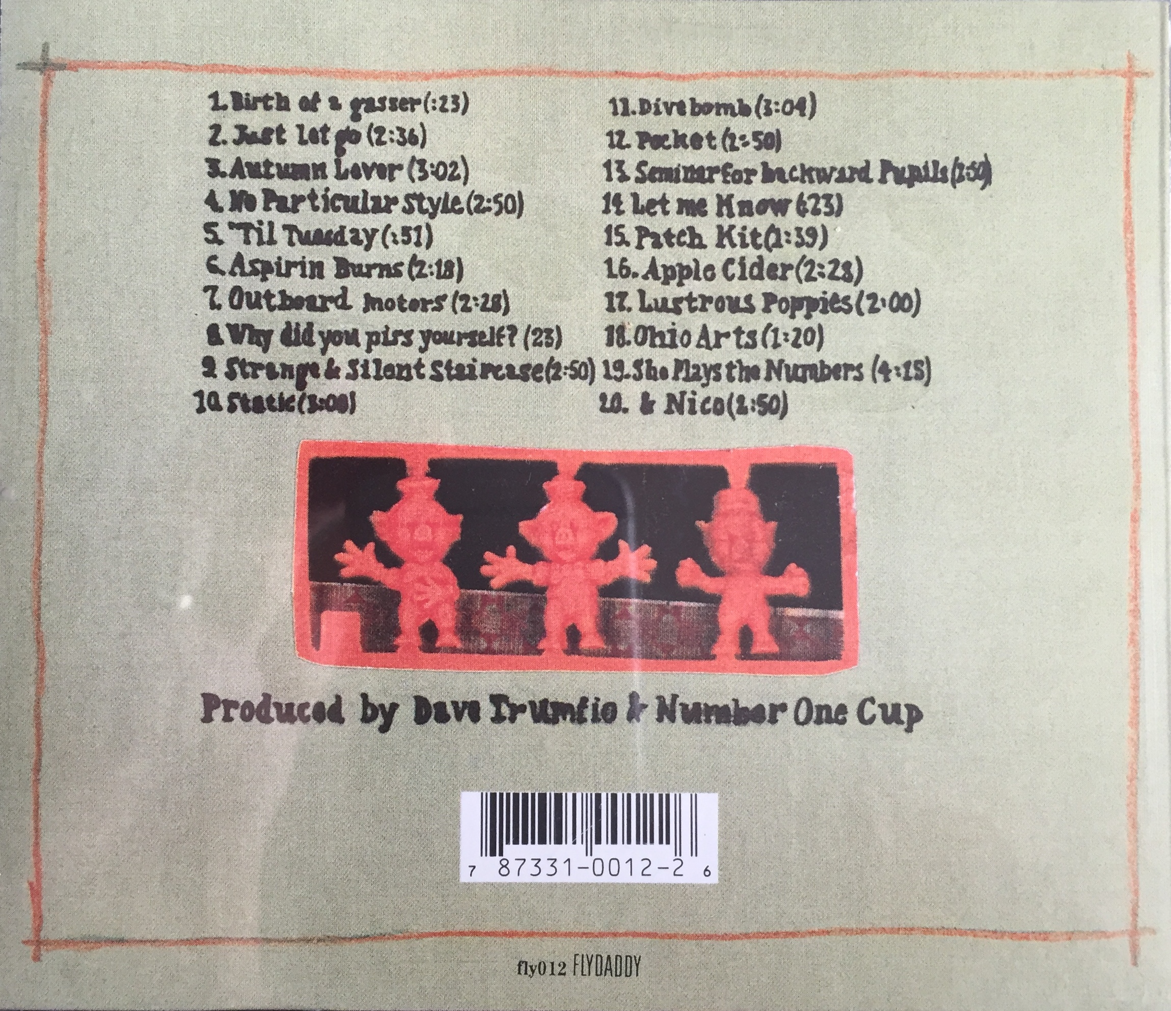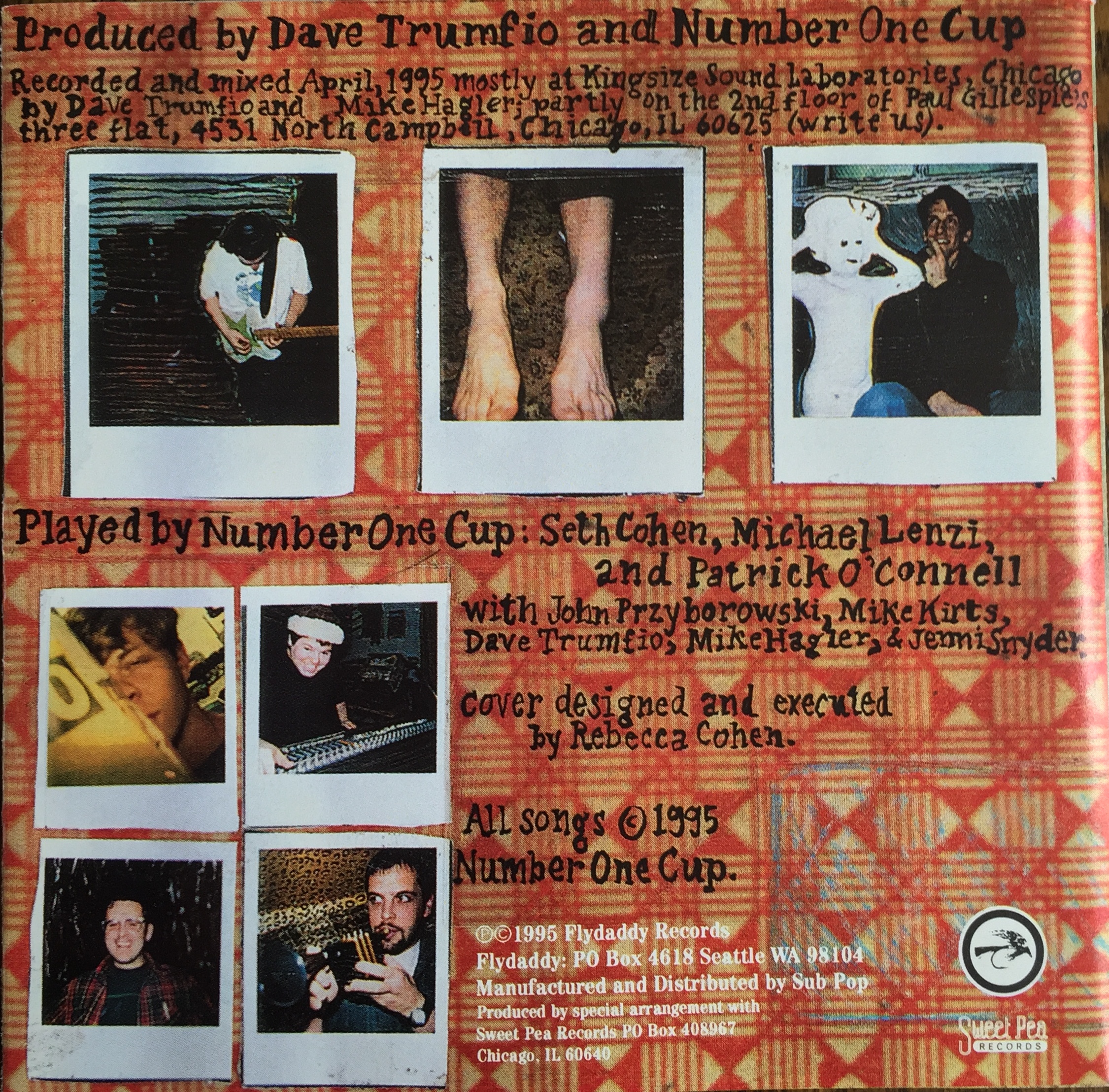 Liner Notes: Produced by Dave Trumfio and Number One Cup. Recorded and mixed April 1995 mostly at Kingsize Sound Laboratories, Chicago, by Dave Trumfio and Mike Hagler; partly on the 2nd floor of Paul Gillespie’s three flat, 4531 North Campbell, Chicago, IL 60625 (write us.) (Label note: This address is outdated)